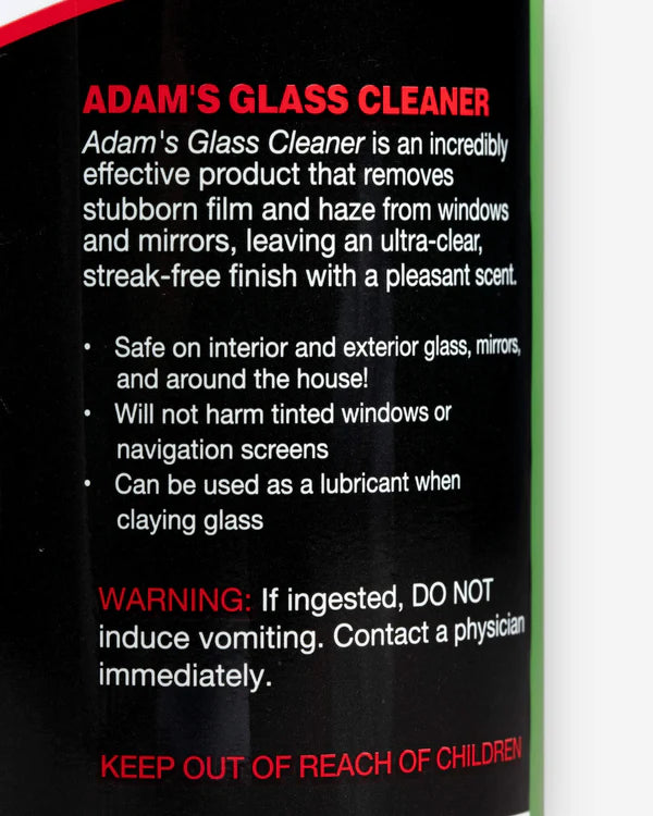 Safe on tint and navigation screens, and more! Streak-free guaranteed! Adam’s Glass Cleaner delivers a powerful cleaning formula matched with a streak-free experience that is also safe for tinted windows. Adam’s Glass Cleaner continues to provide that same powerful cleaning formula matched with a streak-free experience that you know and love but now also contains additional co-solvency and inclusion of the same silane active ingredient we use in our Adam’s Glass Sealant! A quick mist of Adam’s Glass Cleaner will generate a crisp, clean appearance with optical-grade clarity and a highly smooth feel – you’re going to love it!
